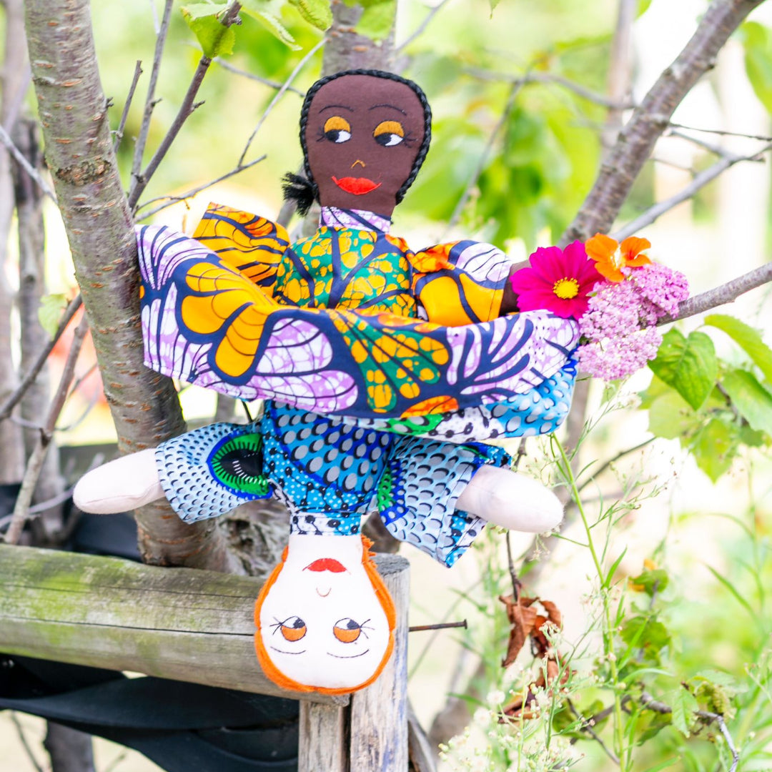 Zola inclusiepop is een uniek dubbelzijdig handgemaakt speelmaatje dat kinderen leert verbinden in plaats van verdelen. Aan de ene kant heeft Zola een wit gezichtje en aan de andere kant een zwart gezichtje. Een speelse, zachte en educatieve manier om te tonen dat huidskleur geen verschil maakt.